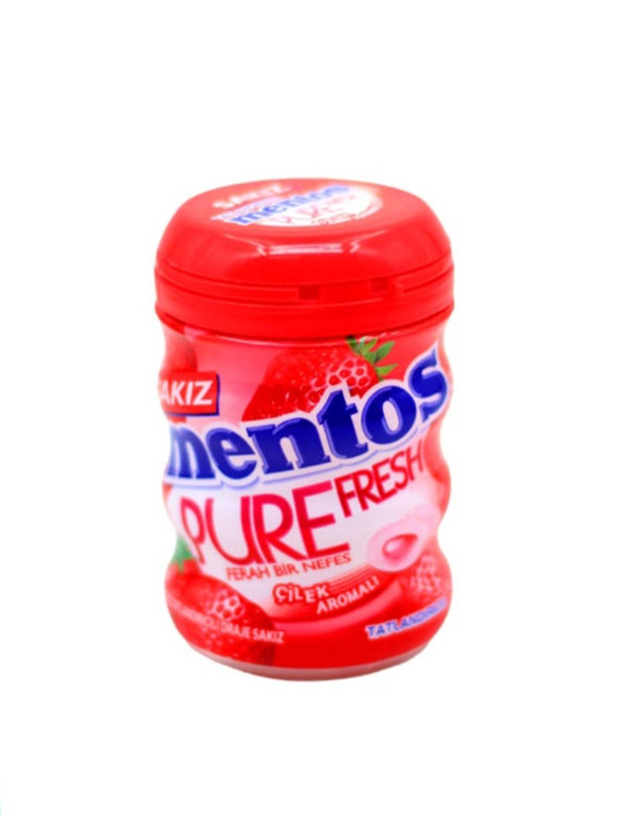 با آدامس بدون قند Mentos Pure Fresh روزی تازه داشته باشید! هر تکه آدامس با طعم توت فرنگی، انفجاری از طعم میوه را ارائه میدهد که پس از جویدن نیز ادامه دارد. آدامس Mentos Pure Fresh که با زایلیتول شیرین شده است، بدون قند است تا حس طعمی بدون احساس گناه را به شما منتقل کند. پوسته ترد این آدامس بدون قند را گاز بزنید تا انفجاری از تازگی را در مرکز نرم آن کشف کنید. جویدن آدامس با زایلیتول ممکن است خطر پوسیدگی دندان را کاهش دهد. ظرف دارای درب قابل بسته شدن مجدد است. یک بطری آدامس بدون قند را در میز، ماشین یا کیف خود نگه دارید تا در مواقع نیاز، نفسی تازه داشته باشید. با آدامس Mentos Pure Fresh به تازگی بله بگویید!